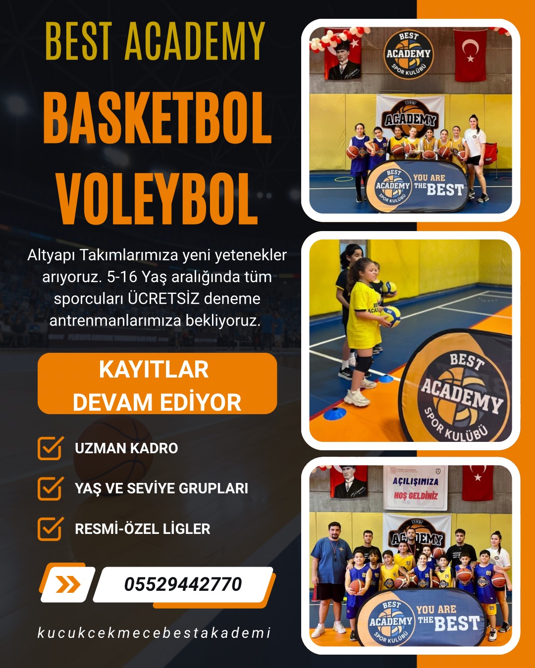 Küçükçekmece Best Akademi olarak, Sefaköy 100. Yıl İlkokulu Spor Salonu’nda çocuklara ve gençlere basketbol ve voleybol alanlarında profesyonel, güvenli ve gelişim odaklı bir antrenman ortamı sunuyoruz.